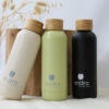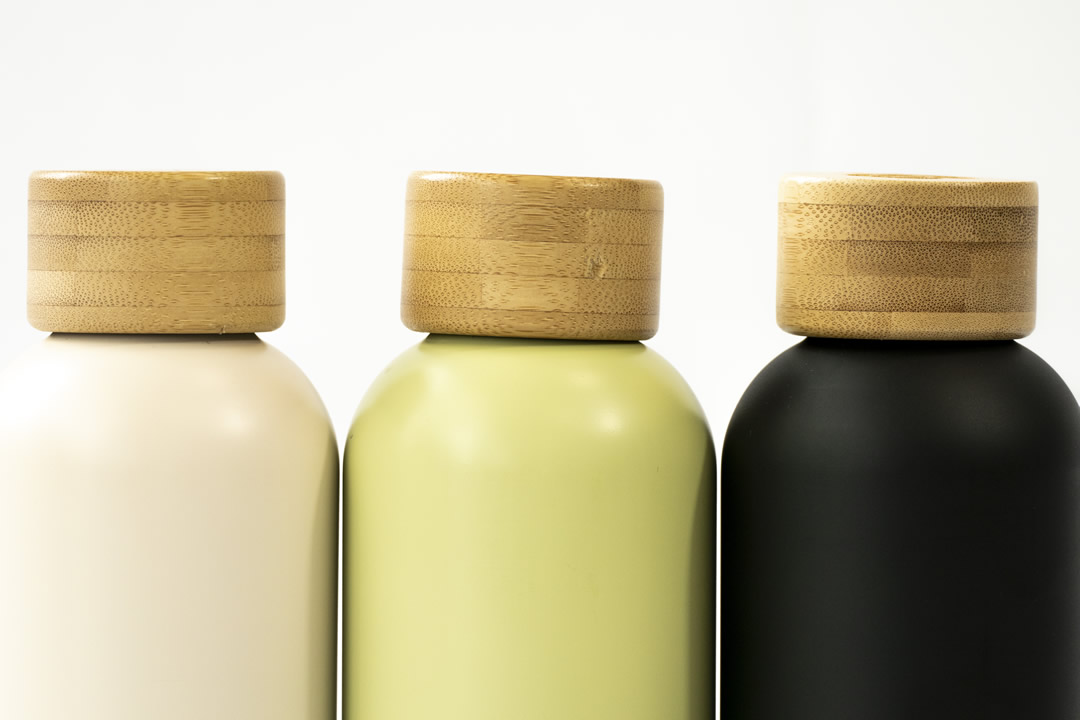 Bambusový uzávěr a nerezová láhev s matným povrchem