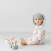 Má ohrnovací rukávy, aby se miminko v noci omylem nepoškrábalo, i ohrnovací nohavice pro snazší přechod mezi denními aktivitami a nocí.