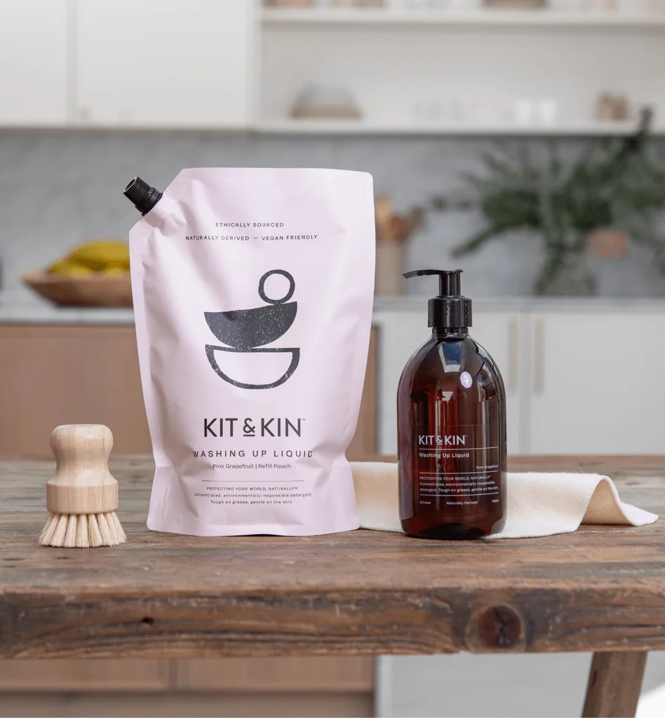 Náš prostředek na mytí nádobí Kit & Kin je vyroben ze 100% přírodních složek, které jsou odolné vůči mastnotě a šetrné k pokožce. Tento koncentrát s vůní esenciálního oleje z grapefruitu a pomeranče dodá mytí nádobí šmrnc a zároveň je šetrnější k naší planetě.