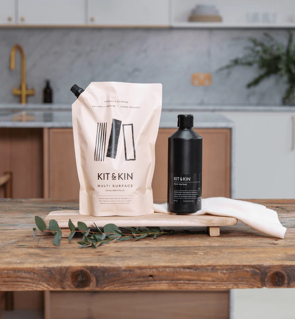 Víceúčelový čistič Kit & Kin je zcela netoxický a je vyroben ze 100% přírodních surovin. Tento oblíbený čisticí prostředek určený pro potravinářské účely se může bez obav stát vaším společníkem při úklidu po vaření.